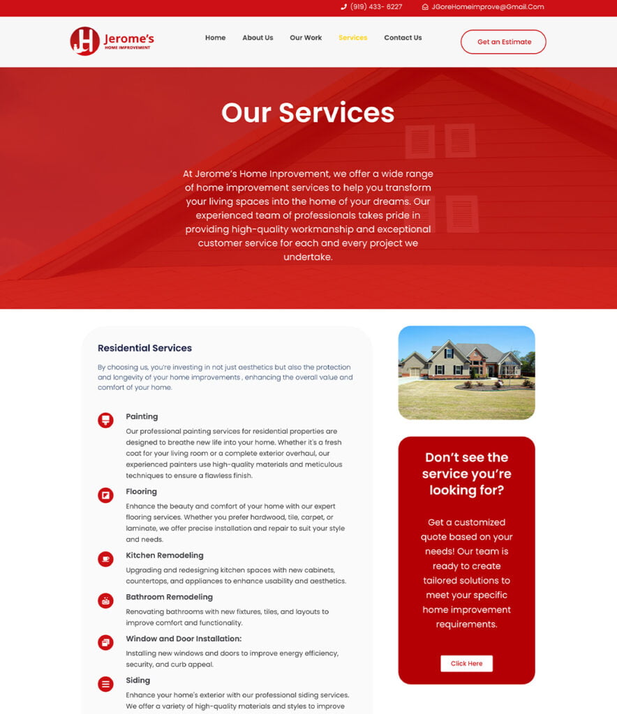 In our work together, we designed a website that reflects Jerome’s classic style. We collaborated with Jerome’s Home Improvement to create a timeless and stylish online presence.